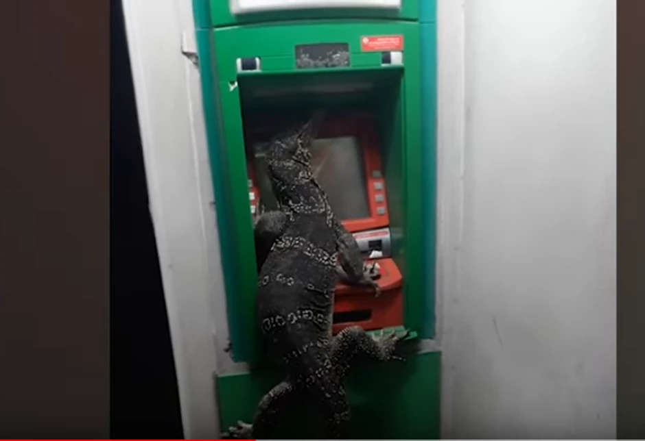 Čovek koji je hteo da podigne novac sa bankomata u Bangkoku, odustao je od toga kada je ugledao ogromnog guštera, koji je zaposeo mašinu.