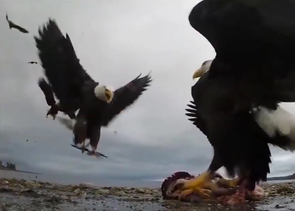 Džejms Vilijams postavio je svoju “GoPro” kameru na plaži u Britanskoj Kolumbiji, Kanada, da snimi desetina orlova koji su jeli ribu. Međutim, jedna od ptica iznenada je zgrabila njegovu kameru i odletela.