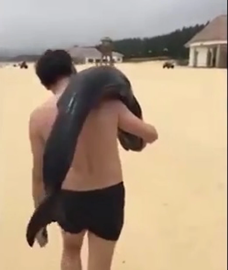 Očevici su rekli da je nesavesni turista jednostavno pokupio delfina, stavio ga u automobil i odvezao se u nepoznatom pravcu. Kratak snimak koji je uhvatio čoveka koji hoda s sisarom preko ramena postao je viralan i ujdno je izavao bes na društvenim mrežama u Kini i svetu.