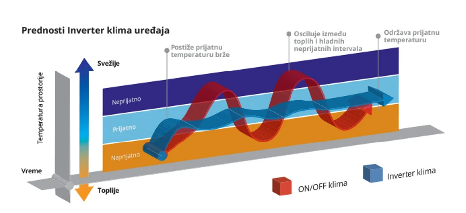 Ključne prednosti inverter klime u odnosu na standardnu, su: