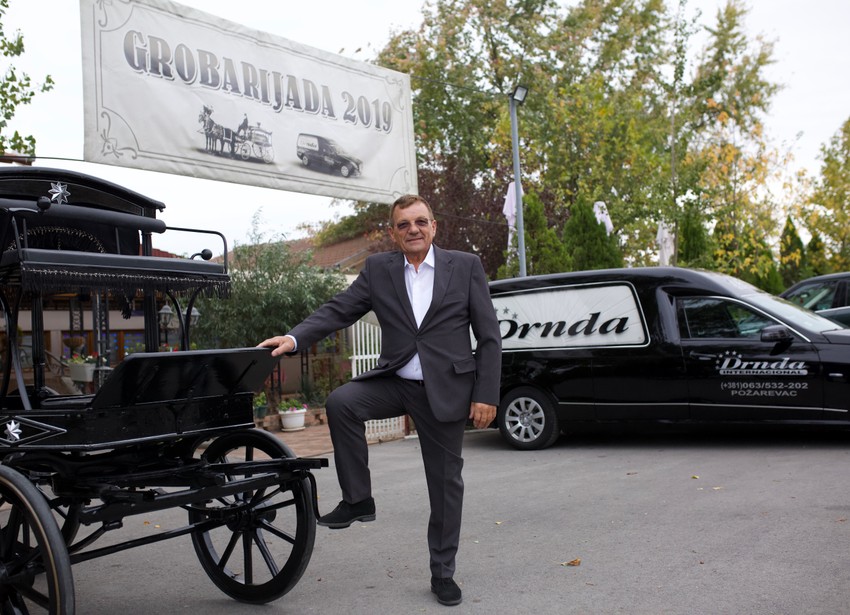 Poslužavnici prepuni hranom, pića na sve strane i duhovite pesme i plesovi: ovo bi neko lako mogao da pogrešno shvati kao srpsko venčanje da nije velike torte u obliku kovčega na godišnjem balu za pogrebnike. Smešten u restoranskoj hali nalik na pećinu u istočnoj Srbiji, događaj je prilika da stotine pogrebnih radnika imaju noćni provod i proslave, dok usput malo posluju sa strane.