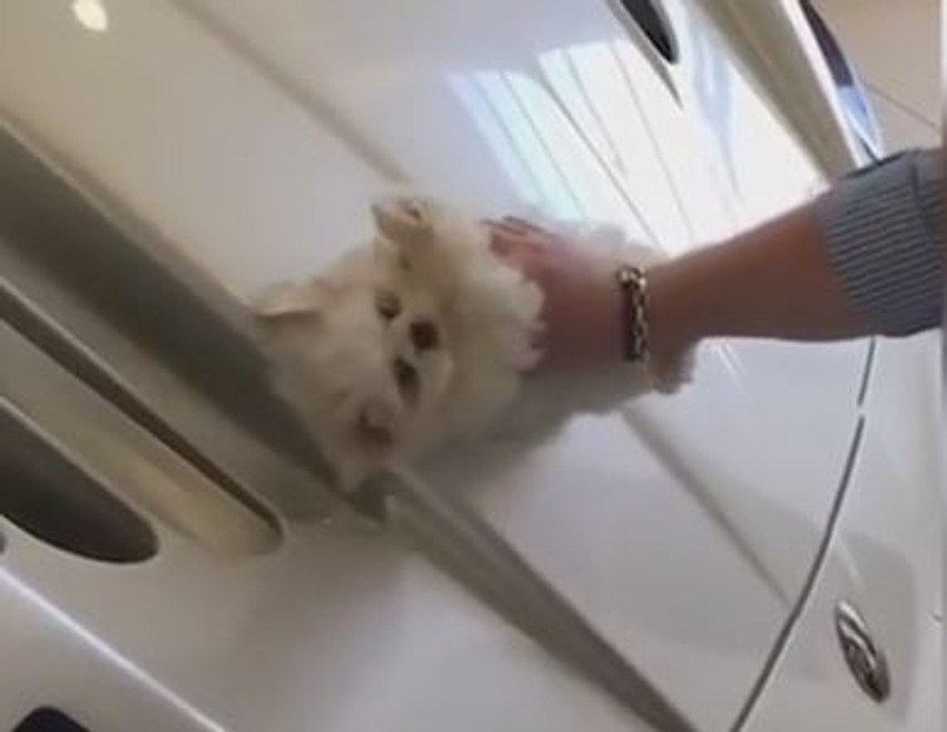 U kratkom videu se vidi kako nepoznati pojedinac trlja štene kružnim pokretima o haubu vozila, a čuje se i smeh u pozadini, piše Dejli mejl.
