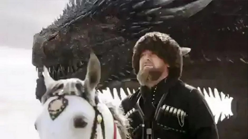 Neko ko ne zna kako izgleda lider Republike Čečenije lako bi mogao da pomisli da je reč o liku iz serije kada ga vidi kako jaše kroz stepu, dok se u pozadini čuje prepoznatljiva muzika.