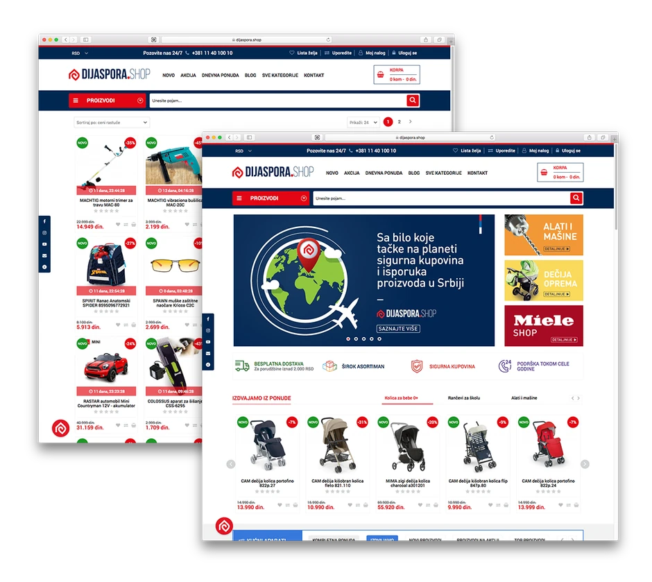 U želji da našim ljudima širom sveta omogućimo brzu, kvalitetnu i sigurnu internet kupovinu i isporuku u Srbiji, kreirana je jedinstvena internet prodavnica Dijaspora.Shop u kojoj, na jednom mestu, možete pronaći preko 40.000 proizvoda vodećih globalnih i regionalnih brendova.