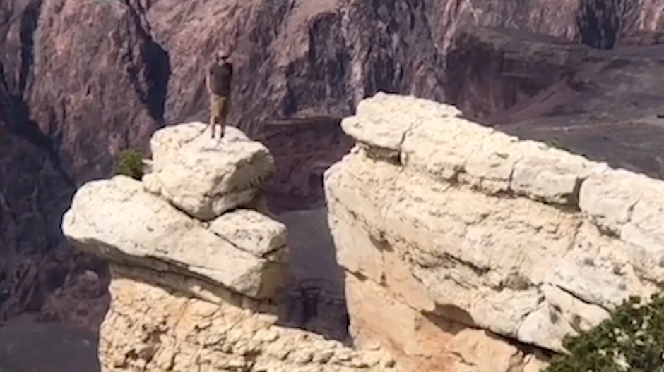 Jedan mlađi muškarac skočio je sa stene na stenu u Velikom Kanjonu u Americi, i tamo je ostao zarobljen jer je stena sa koje je skočio dosta viša od stene na kojoj se našao. Kako je u opisu videa navela osoba koja ga je objavila svi koji su posmatrali ovu scenu bili su na ivici da dobiju srčani udar.
