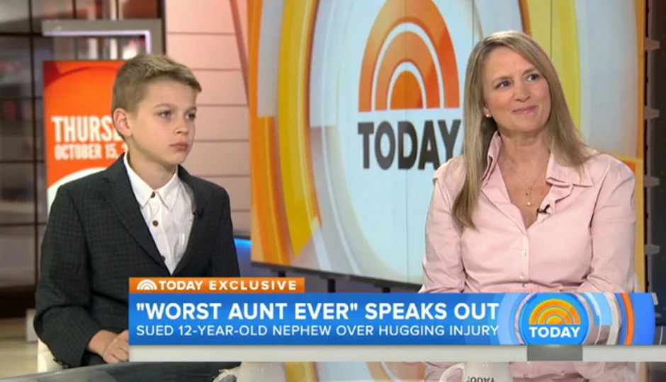 Dečak kojeg je tužila rođena tetka jer joj je slomio zglob zagrlivši je, progovorio je prvi put nakon tužbe navodeći da ona “nije najgora tetka na svetu kako svi misle”. Dženifer Konel (54) je slomila zglob kada joj je nećak Šon Tarala skočio u krilo na proslavi njegovog osmog rođendana u Vestportu u Konektikatu 2011. godine.