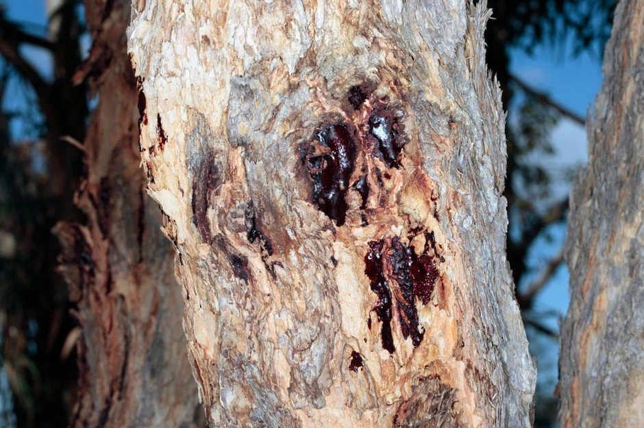Corymbia opaca, poznatija kao „krvavo drvo“, raste u Australiji a ime je dobilo po tamnocrvenom soku koji ispušta kad se poreže stablo. Taj sok – takozvani “kino” – curi iz “rane” na drvetu dok se ne kristalizuje, a potom ga Aboridžini prikupljaju i koriste za lečenje.