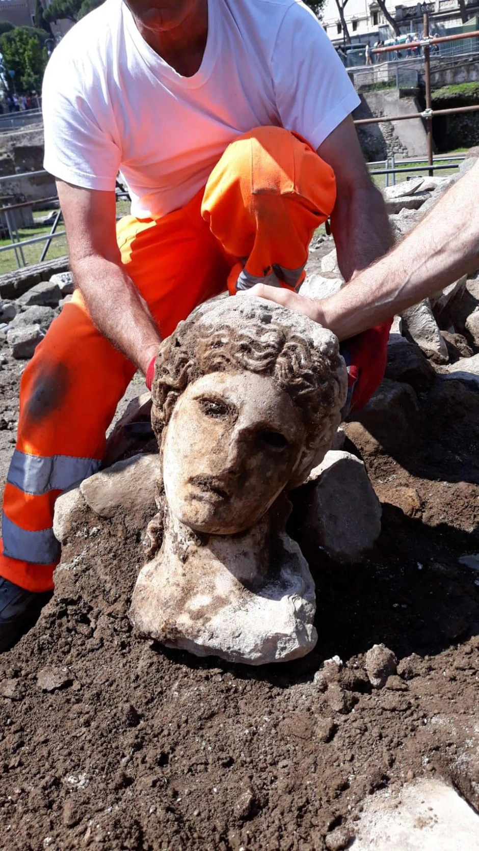 Glava je pronađena u srednjovekovnom zidu u ulici Alesandrina, koja je gotovo paralelna sa avenijom Via dei Fori Imperiali koja vodi do Koloseuma.