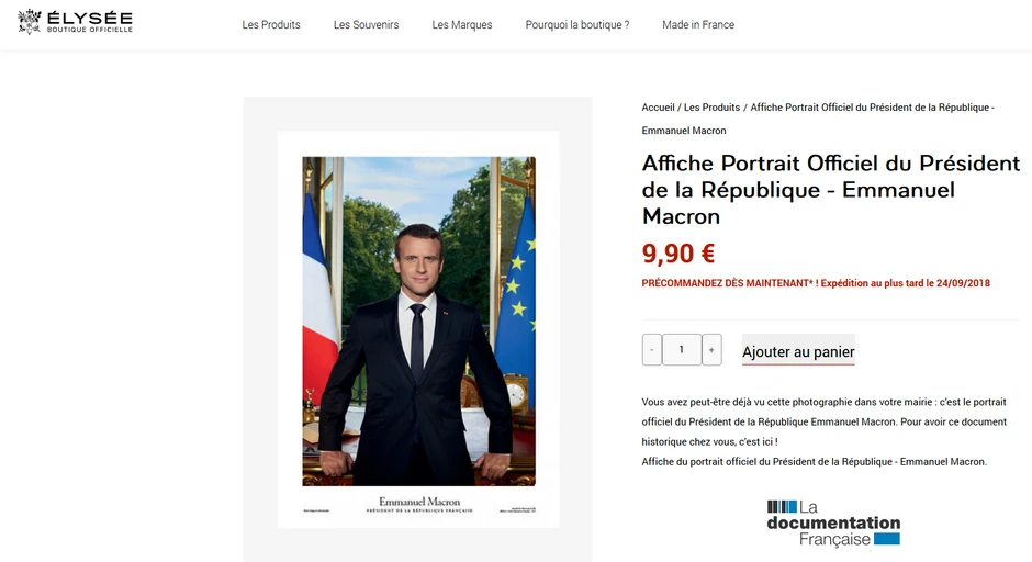Jedan od predmeta je poster sa likom francuskog predsednika Emanuela Makrona, koji je odobrio ovu akciju, po ceni od 9,9 evra.