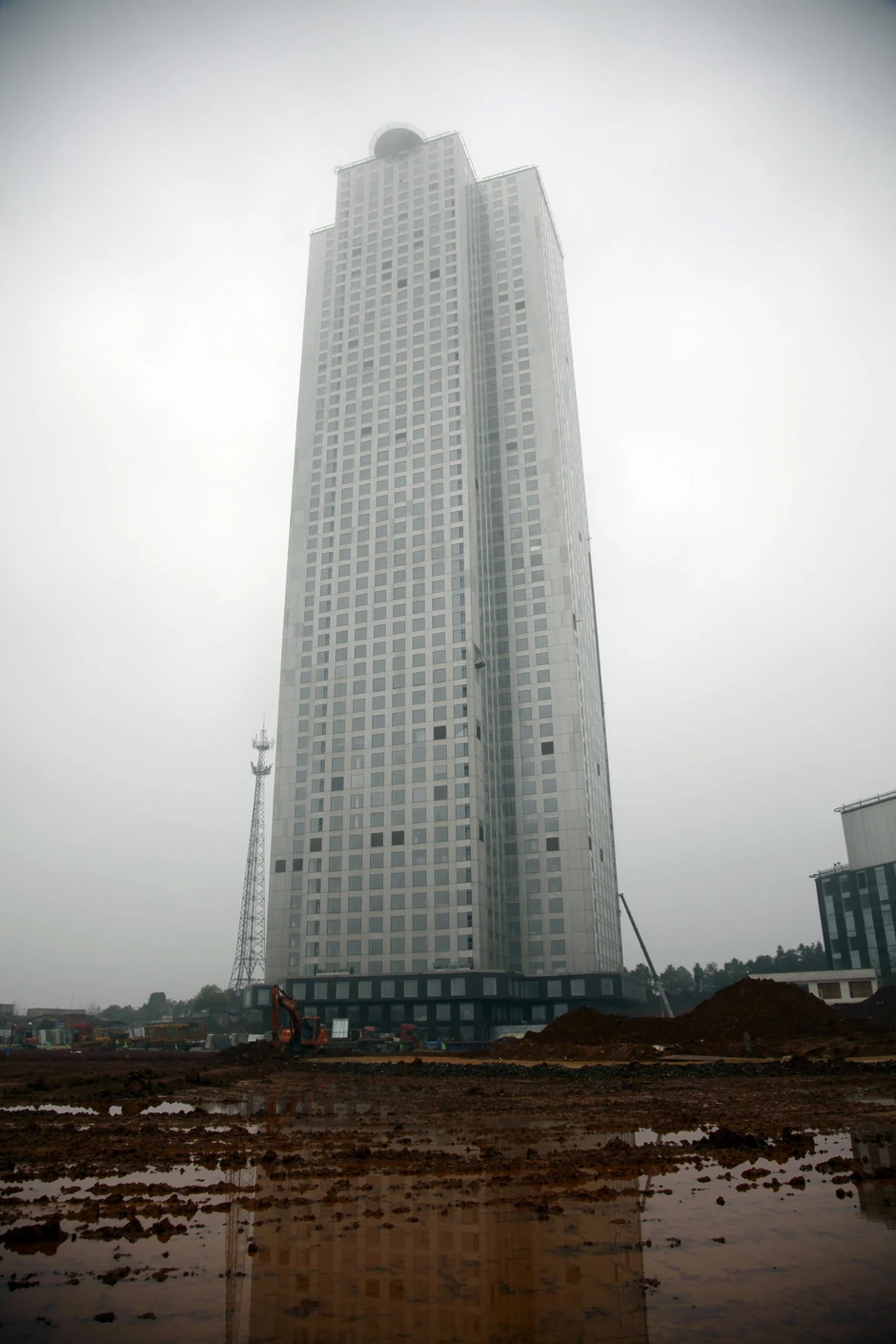 "Mini skaj siti" ima 800 stanova i kancelarijski prostor za 4.000 ljudi, a prodaja će početi u martu. Proizvodnja više od 2.700 blokova trajala je četiri meseca.