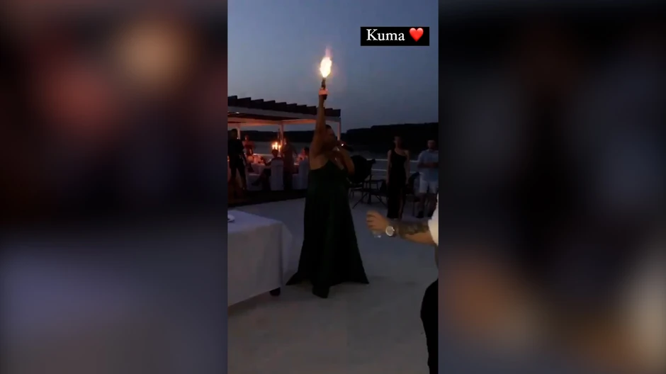 Naime, ona je tokom veselja dok je pevala pesmu "Potpoiću ovaj splav" od Stoje, u jednom trenutku uzela pištolj i zapucala na oduševljenje gostiju, te je svadbeno veselje postalo još turbulentnije, sudeći po reakciji prisutnih, koji su nakon ovog bloka pesmi, uskočili u bazen odeveni.