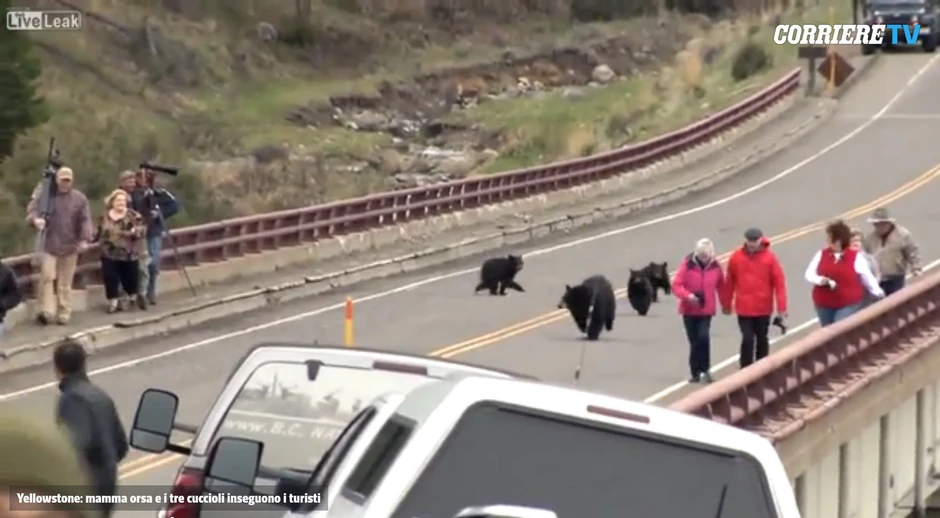 Medvedica iz Jeloustouna se toliko uplašila za sigurnost svojih mladunaca zbog broja turista koji su je okruživali da je pojurila za njima.