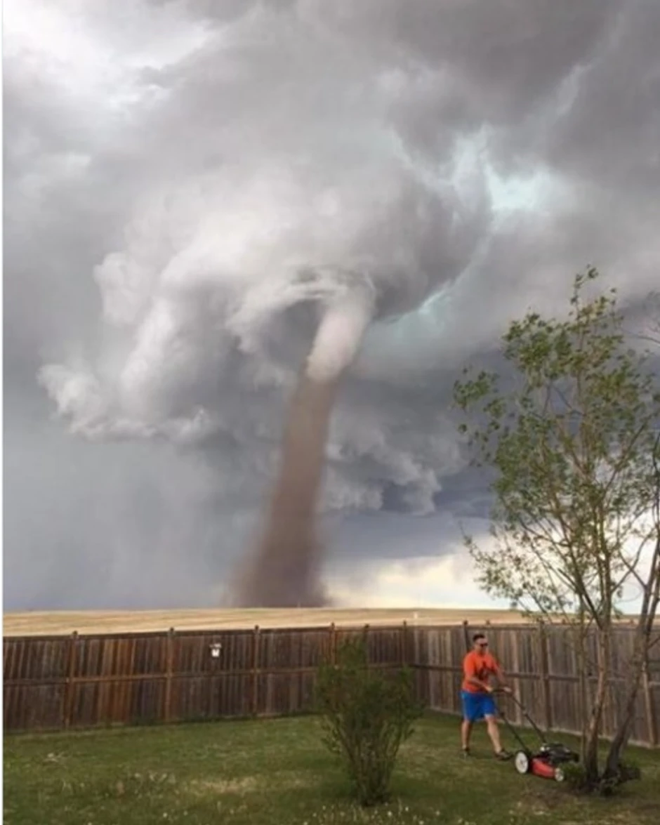 Fotografija jednog Kanađanina kako potpuno opušteno kosi travu u dvorištu dok iznad njega besni tornado postala je hit na internetu.