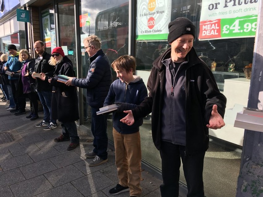 Kada je mala knjižara "October Books" u Sauthemptonu (Engleska) trebalo da se preseli na novu lokaciju na drugom kraju ulice, suočila se s problemom. Kako da presele celokupan inventar, a da ne potroše previše novca, ili izbegnu zatvaranje na duži period?