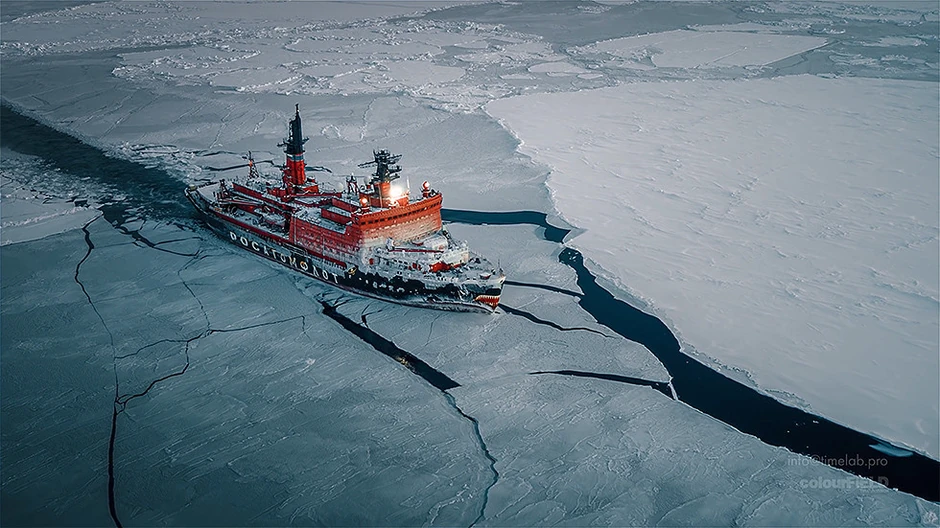Ekstremni uslovi na Arktiku nisu bili prepreka za ledolomac od 75.000 konjskih snaga dok je plovio kroz deo Severnog morskog puta prekriven slojem leda debelim nekoliko metara.