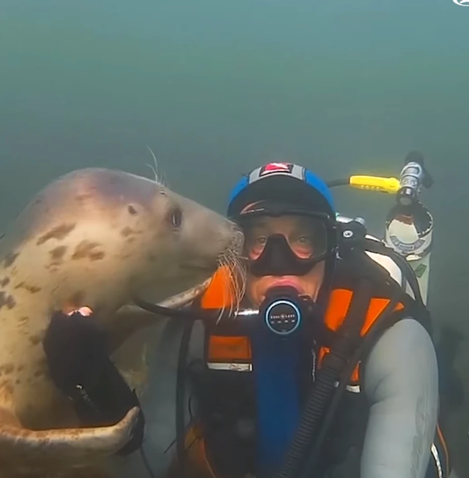 Ovo je nešto najslađe što ćete videti danas, zato se opustete gde god da se nalazite i uživajte u igri i maženju ove velikih vodene bebe sa roniocem.