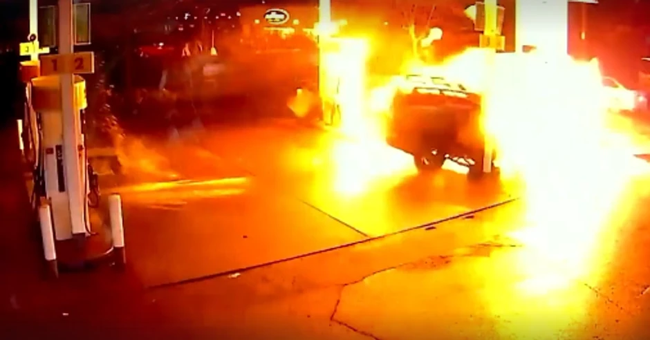 Sigurnosne kamere na benzinskoj pumpi u američkom Sijetlu zabeležile su neverovatan prizor automobila koji u punoj brzini prolazi između aparata za točenje goriva nakon čega je nastupio vatreni bljesak, a čitav incident koji je deo niza nesrećnih okolnosti završio se ozbiljnim povredama vozača drugog vozila.