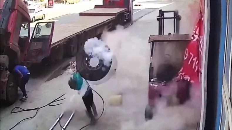 Video nadzor sa jedne garaža u kineskom gradu Danjigkou zabeležila je nesvakidašnji momenat u kojem majka baca iz ruku svoju bebu nakon što ju je u glavu pogodila kamionska guma.