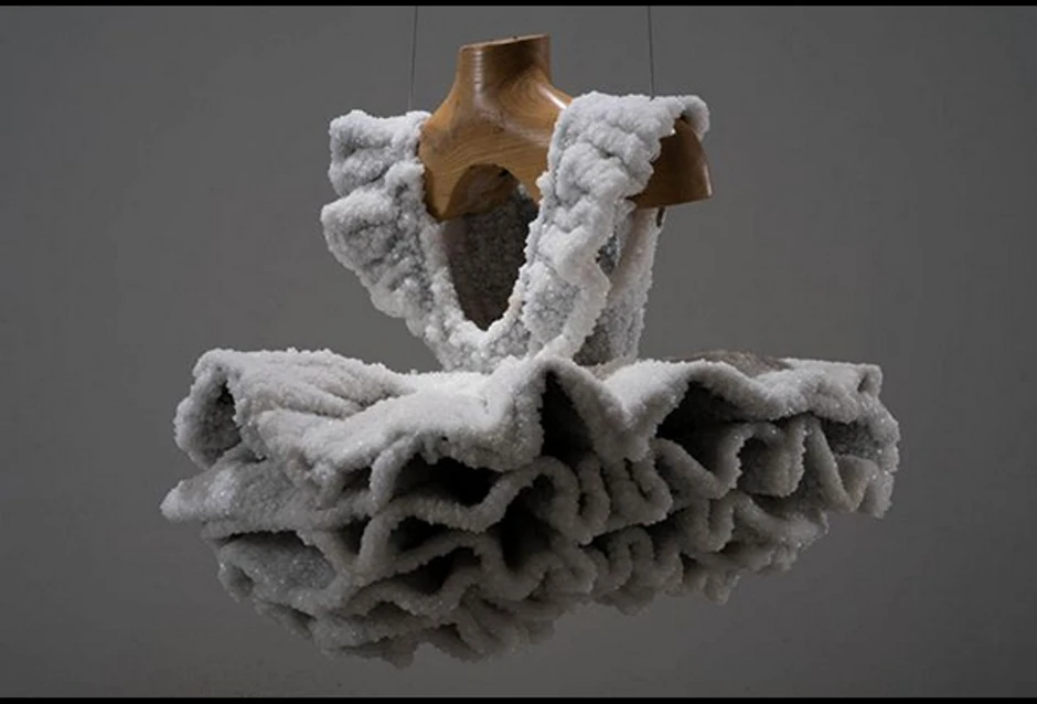 Izraelska umetnica Sigalit Landau već 15 godina spušta objekte u Mrtvo more, gde dobijaju “koru” od soli. Baletsku haljinicu u metalnom kavezu postepeno su obložili slojevi soli i dobijena je “kristalna” skulptura teška 200 kilograma.