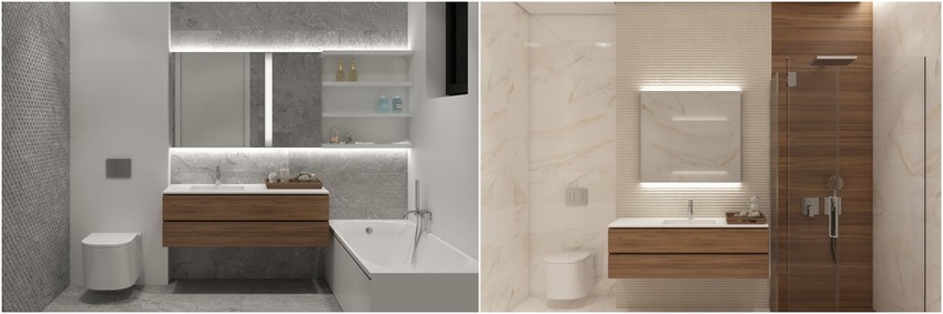 Sve Porcelanosa mermerne pločice kreirane su da budu potpuno identične prirodnom mermeru iz odabranog kamenoloma, čime se briše svaka razlika između pločica i prirodnog mermera. Trend u modernim kupatilima je kombinovanje pločica istog izgleda, ali različitih dimenzija i formata, pa se tako u kupatilima susreću kvadratne i pravougaone pločice. Mermerne pločice dopunjene su pločicama drugog tipa na odabranim lokacijama, pa će tako prostor za tuširanje biti potpuno sačinjen od pločica koje podražavaju tamno drvo, dok će po jedan zid biti obložen pločicama koje imitiraju prirodni kamen, jer mermer izgleda najbolje kada je dominantan, ali ne i jedini materijal u kupatilu.