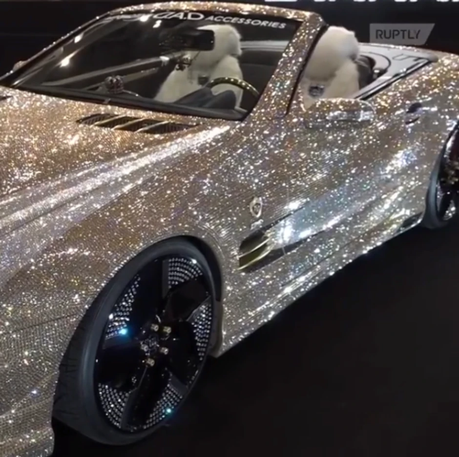 Svarovski kristali, zlato, titanijum i ko zna šta još učinili su da ovaj Mercedesov, inače sportski automobil bude baš težak za gledanje. Tačnije, toliko težak da su vam potrebne naočare za sunce prilikom gledanja video snimka.