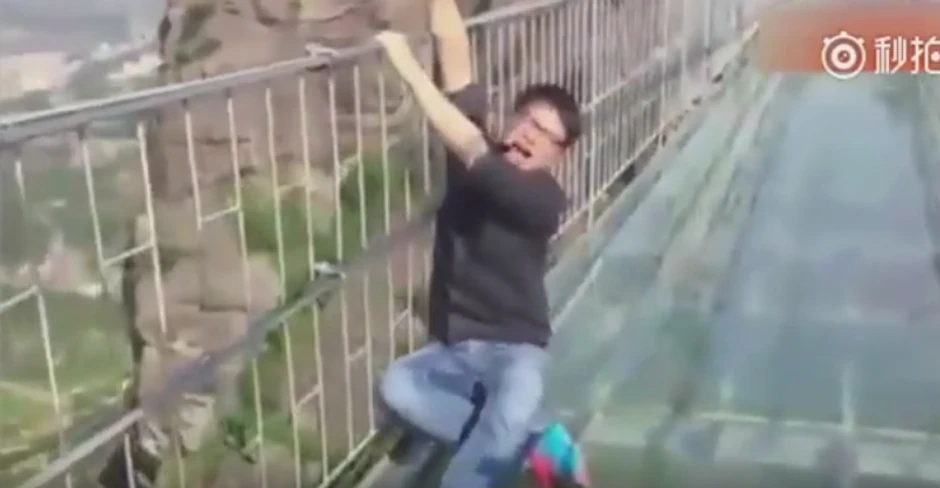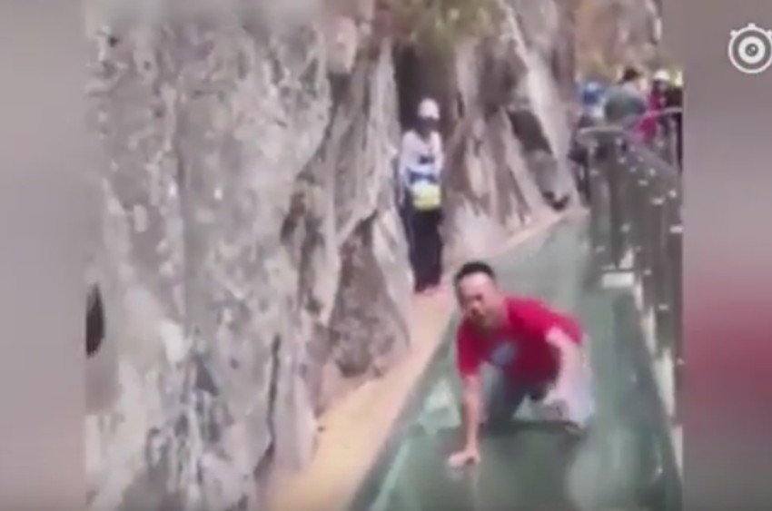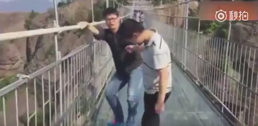 Uplašeni turisti snimljeni su dok su pokušavali da pređu stakleni most koji se nalazi na nekoliko stotina metara iznad kanjona u Kini.