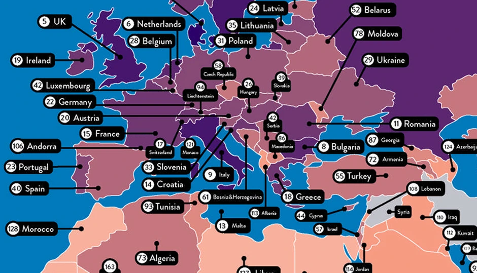 Srbija je zauzela 42. mesto, a na listi se nalaze i naše komšije, pa je tako Bosna i Hercegovina zauzela 61. mesto, Makedonija 86, a u Top 20 se nalazi Hrvatska na 14. mestu, Rumunija na 11. mestu i Bugarska koja je na 8. mestu među prvih deset na ovoj listi.