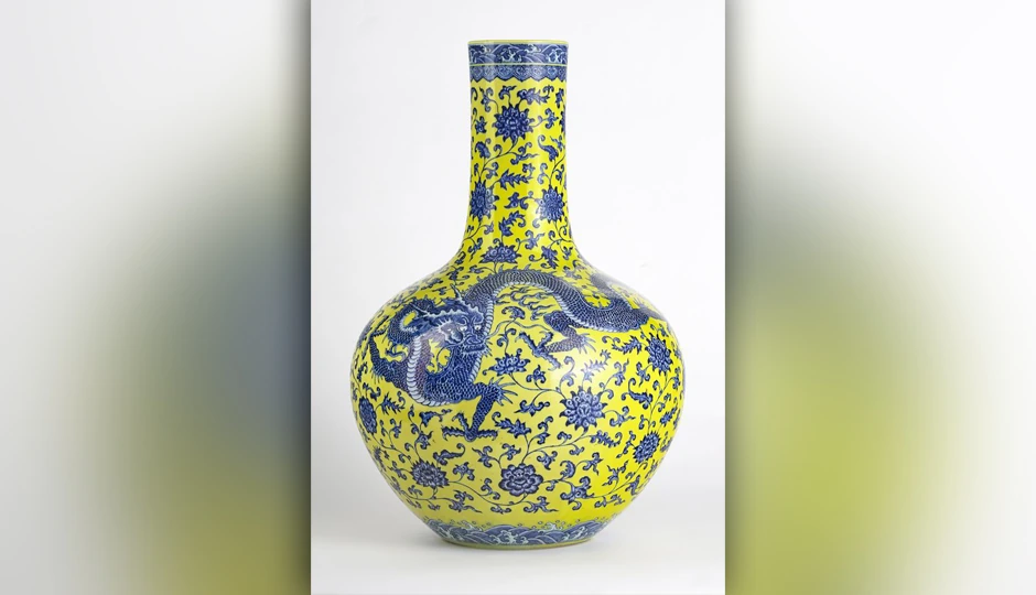 Vaza visoka 60 centimetara oslikana je plavim zmajevima na žutoj podlozi i potiče iz ženevske umetničke zbirke. Stručnjaci tvrde da je porcelanska posuda dostigla do sada najveću vrednost na švajcarskim aukcijama, ne računajući nakit i satove.