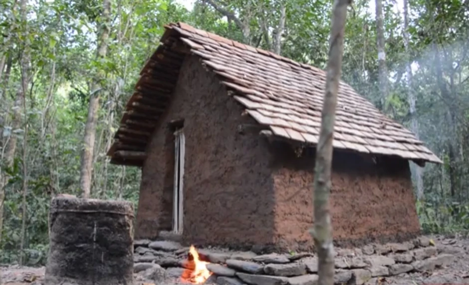 Ova koliba mnogo je više od prinudnog doma, a nastala je korišćenjem drveća i gline kojih u šumi ima u izobilju. Prvo je nastao kostur kuće zajedno sa krovom, a temelj je sastavljen od kamenja i gline.