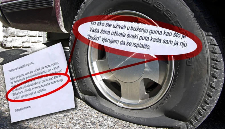 Na društvenim mrežama se brzinom svetlosti deli poruka koju je besni muškarac ostavio osobi koja mu je probušila gumu na automobilu i može se slobodno reći da onome ko je to delo počinio, neće biti baš svejedno po čitanju.