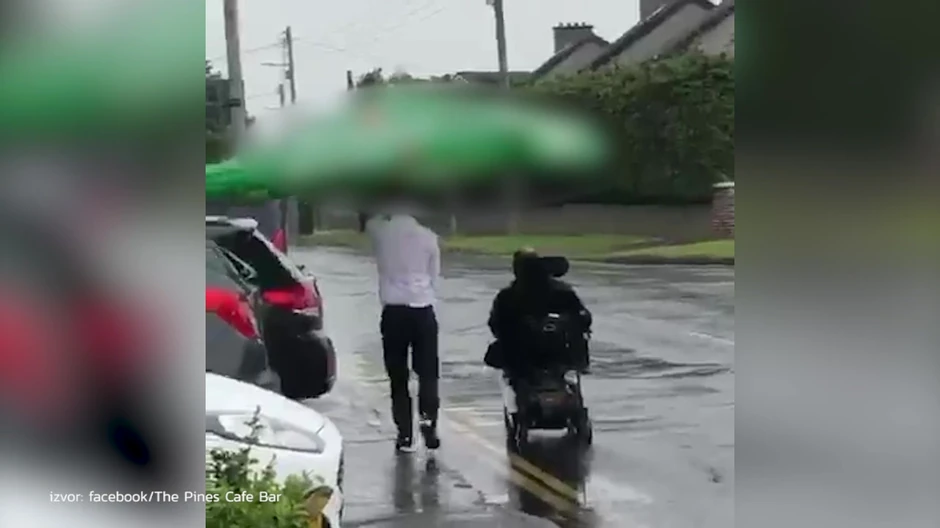 Video zabeležen u Dablinu u Irskoj, prethodnih dana širi se društvenim mrežama i malo je reći da je oduševio korisnike. Naime, mladić po imenu Frenki odrađivao je svoju smenu u "Pajns baru", kada je jedan od gostiju krenuo kući, svojim električnim skuterom za invalide, prenosi "Unilad".