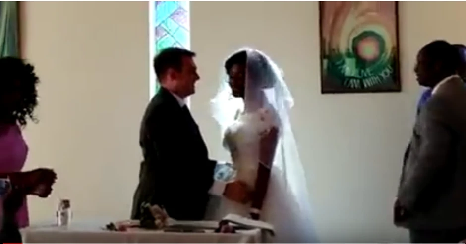 Mlada je obukla venčanicu bez rukava, a ostatak desne ruke bio je uvijen debelim zavojem. Kada joj je Džejmi stavio prsten na levu šaku, videlo se da je i ona zavijena i da ima braunilu. Kada je Zanele potpisala dokumenta, prolomio se snažan aplauz.
