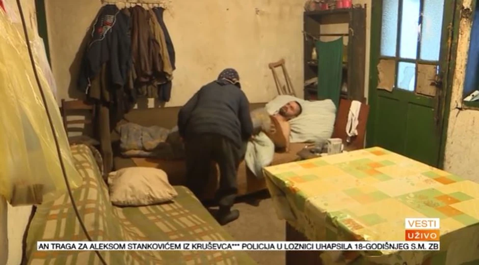 U jednoj sobi sa zemljanim podom i urušenim plafonom Olgica neguje sina Vladu (28). Do pre šest meseci imali su barem hranu, a onda je Vlada, koji je radio kao sezonski građevinac, doživeo nezgodu i pao sa skele sa visine od šest metara.