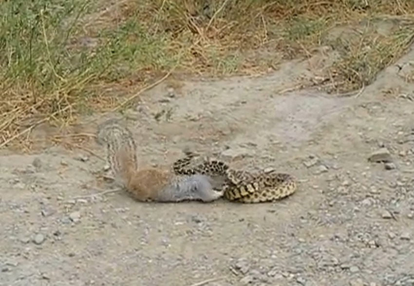Pošto ju je gmizavac nekoliko puta ujeo, veverica je shvatila da će moći na miru da uživa u obroku samo ako zmiji odgrize glavu.