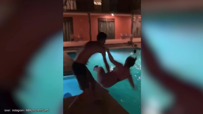 Momak je svoju izabranicu držao u naručju u nameri da je nežno ubaci u bazen, međutim umesto u vodu, on ju je slučajno bacion na beton.