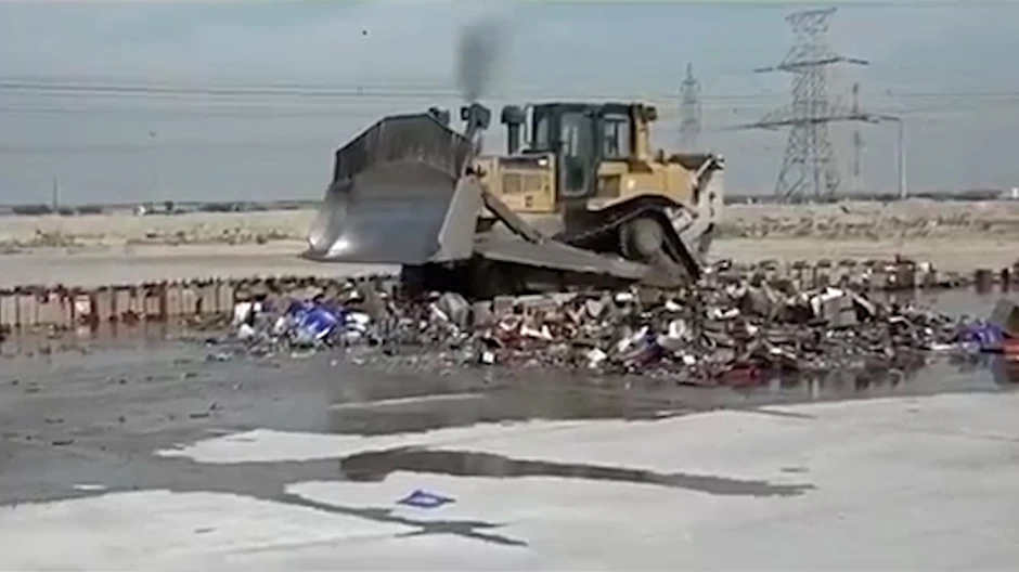 Društvenim mrežama cirkuliše video snimak u kojem se vidi kako pod gusenicama bagera nestaju ogromne količine najkvalitetnijih alkoholnih pića.