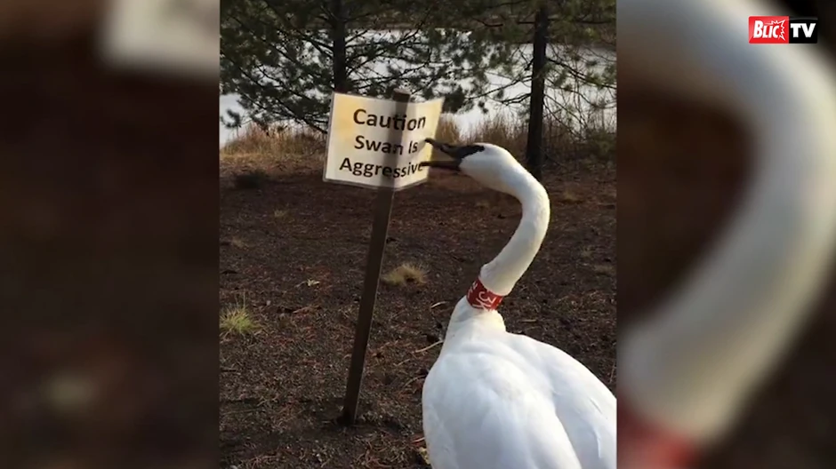 Ovom labudu se očigledno nije dopalo pismeno upozorenje da je agresivan pa je odlučio da ga "opovrgne"...