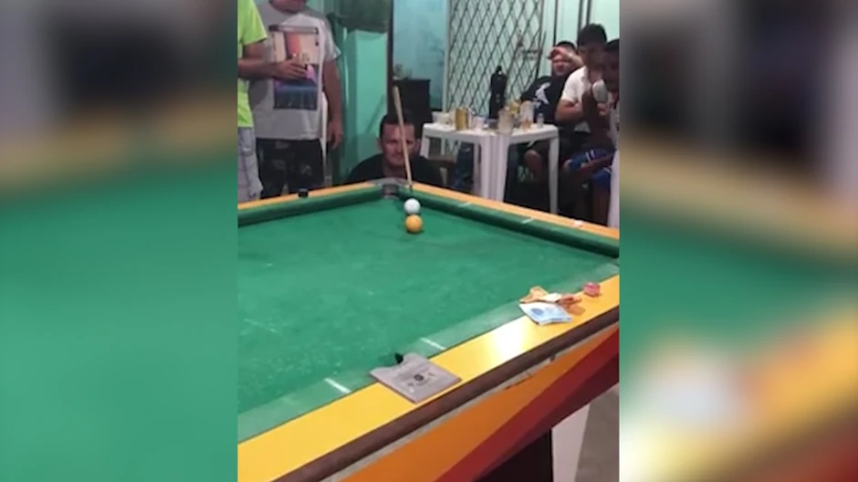 Nakon što je na neverovatan način ubacio kuglu u rupu, oduševljenje u bilijar klubu je bilo enormno.