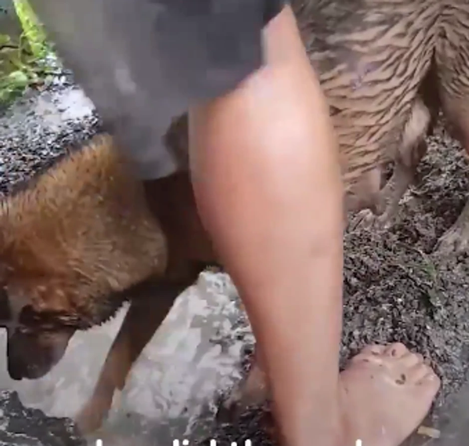 Naime, iako je mogla da računa na pomoć svog vlasnika, ova keruša je ipak morala da se i sama izloži opasnosti i da posle kopanja šapama, sama uđe u rupu punu vode u kojoj su se nalazili njeni štenci.
