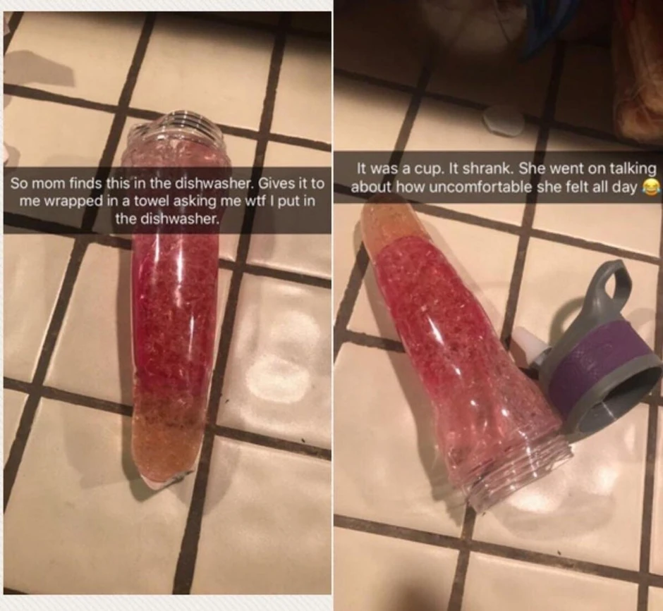 – Moja mama je pronašla ovo u mašini za posuđe. Dala mi je to zamotano u peškir i pitala me šta to stavljam u mašinu. To je boca. Smanjila se. Mama je stalno pričala koliko se neugodno osećala tog dana – napisala je ćerka koja je fotografiju otopljene boce objavila na društvenoj mreži "Reddit", gde je izazvala pravo oduševljenje.