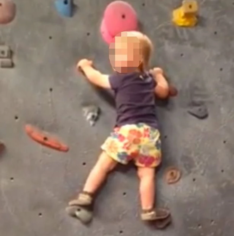 Jedna majka je izazvala buru na Fejsbuku kada je na ovu društvenu mrežu postavila snimak na kom se njena ćerka stara 19 meseci penje uz veštačku stenu bez sigurnosnog penjačkog pojasa.