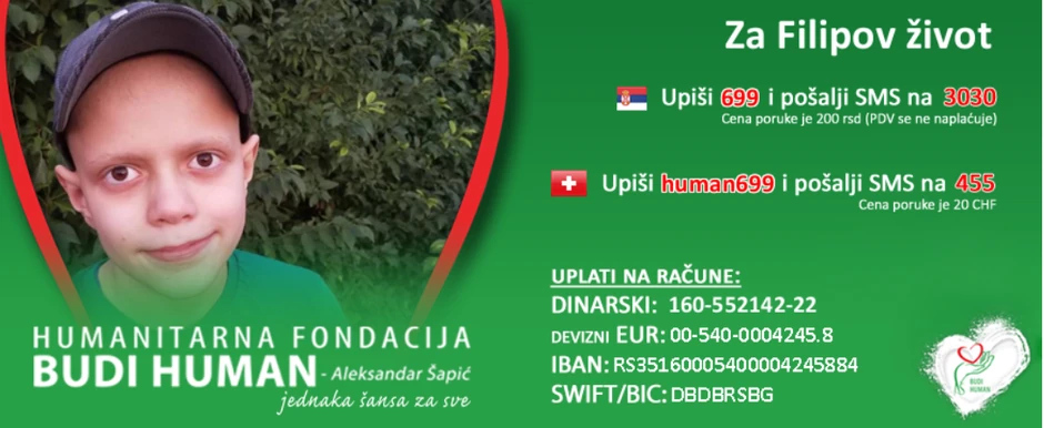 Nastavak Filipovog lečenja i redovne kontrole iziskuju značajna finansijska sredstva, zbog čega je potrebno da Srbija još jednom pokaže da je ujedinjena.
