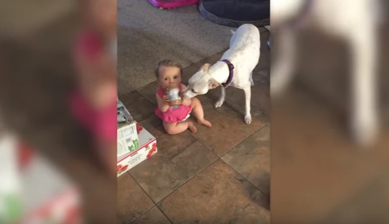 Pas je lizao teglu i lice i ruke devojčice, a majci to nije nimalo smetalo.