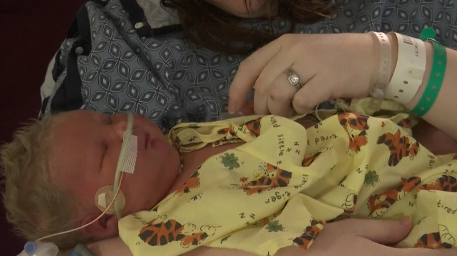 Beba sa bujnom plavom kosom smeštena je na odeljenje za intenzivnu negu i uskoro treba da bude otpuštena iz bolnice.