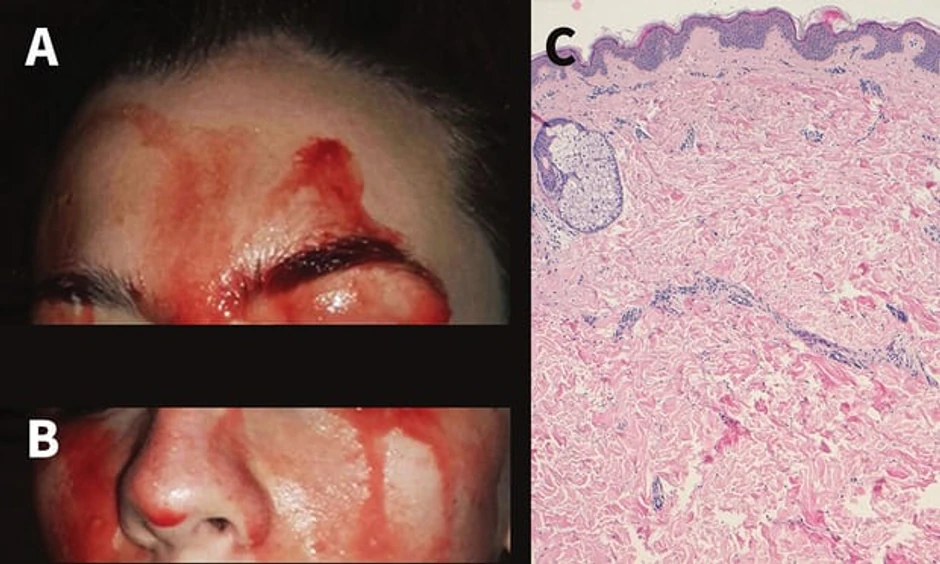 Ona je bez vidljivih rana ili lezija na koži otišla kod doktora gde je opisala kako joj godinama, kada joj se znoji čelo i dlanovi, izlazi krv.
