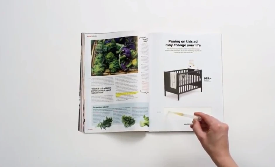 Naime, IKEA poziva žene da se pomokre na reklamu, kao što bi učinile s tradicionalnim testom na trudnoću, nakon čega će se, ukoliko su trudne, na papiru pojaviti kod za popust na dečje krevece koji mogu iskoristiti u prodavnicama te kompanije.