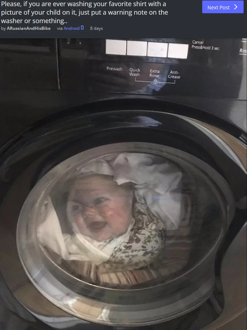 Prilikom štampanja majica sa likovima dragih osoba dobro razmislite da li je to idealan način da se ispolji ljubav prema nekom, jer može vam se desiti da upravo zbog toga doživite neprijatnu situaciju, odnosno šok poput jednog tate koji je pretrnuo kada je u svojoj veš mašini video jedan detalj.