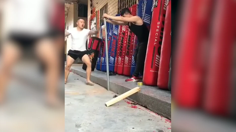 Cigle i metal ne predstavljaju nikakvu prepreku za ovog majstora borilačkih veština, koji svojom cevanicom lomi sve pred sobom:
