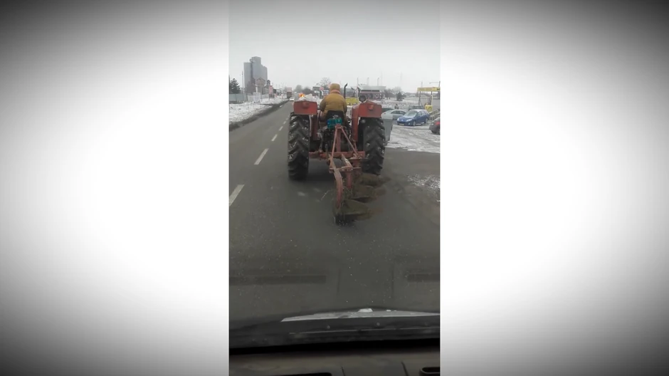 Vozači koji su se našli na putu koju vodi kroz Rumu nisi mogli da veruju svojim očima kada su ispred sebe ugledali traktoristu koji je doslovno orao put.