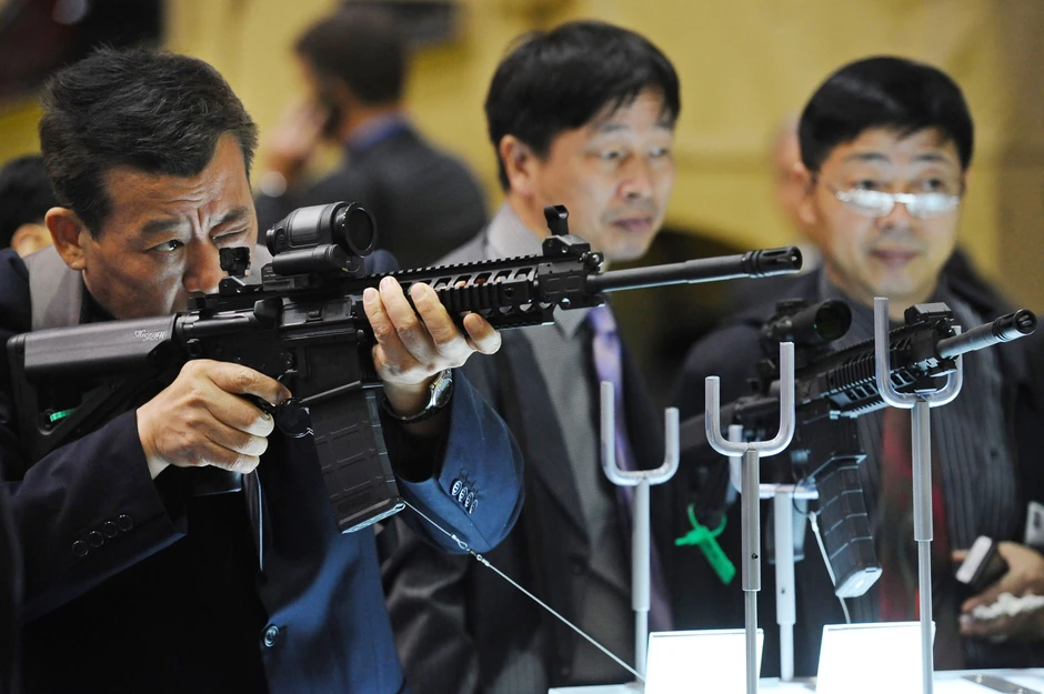 U takvo oružje spadaju okovi za noge sa tegovima i elektrošok palice, koji su bili izloženi među ostalim proizvodima na sajmu.